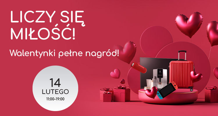 W sobotę, 14 lutego, Galeria Gryf zaprasza na Walentynki pełne nagród. Rejestrując zakupy na określone kwoty, dokonane w dniach 9 – 14 lutego, można wziąć udział w konkursie, w którym do wygrania są m.in.: telewizor, konsola, czy ekspres do kawy.